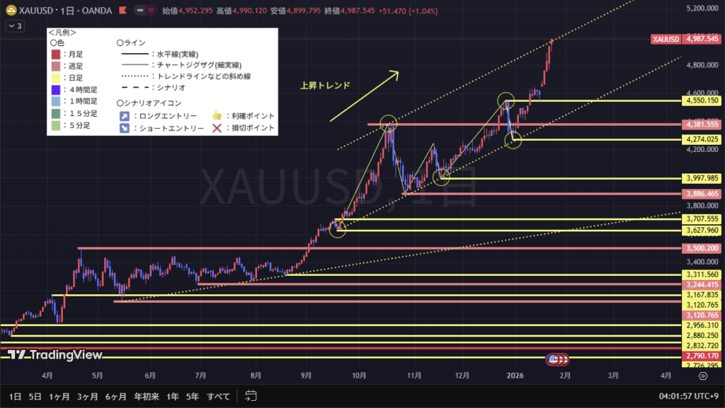 日足は、上昇トレンドを継続。