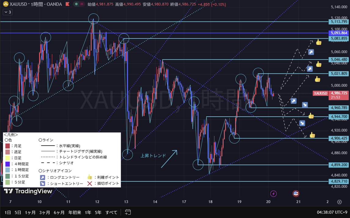1時間足は、上昇トレンド。