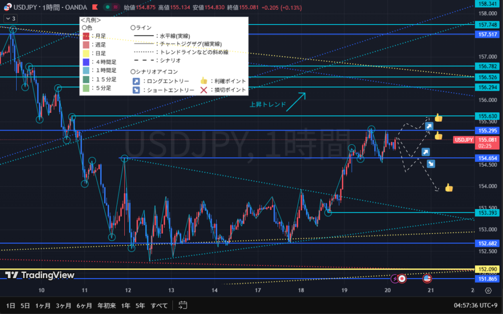 1時間足では、上目線に転換しているため、ロングエントリーがメインシナリオ。