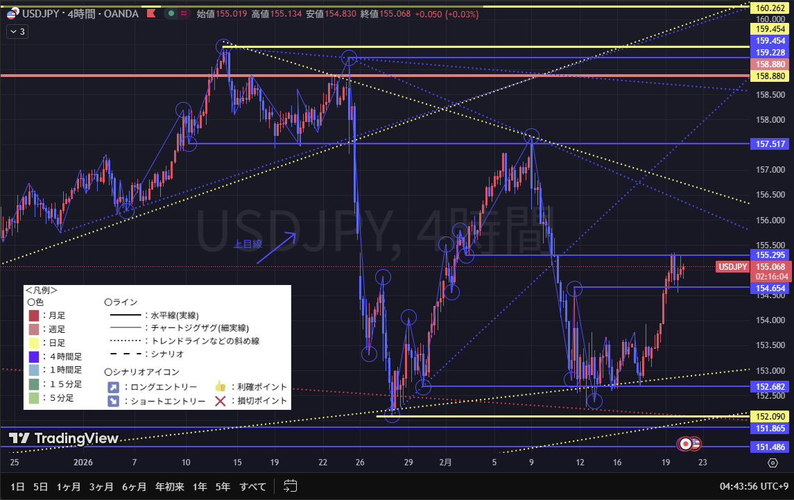 日足ではまだ迷いが見えるが、4時間足は上目線に書き換わっている。