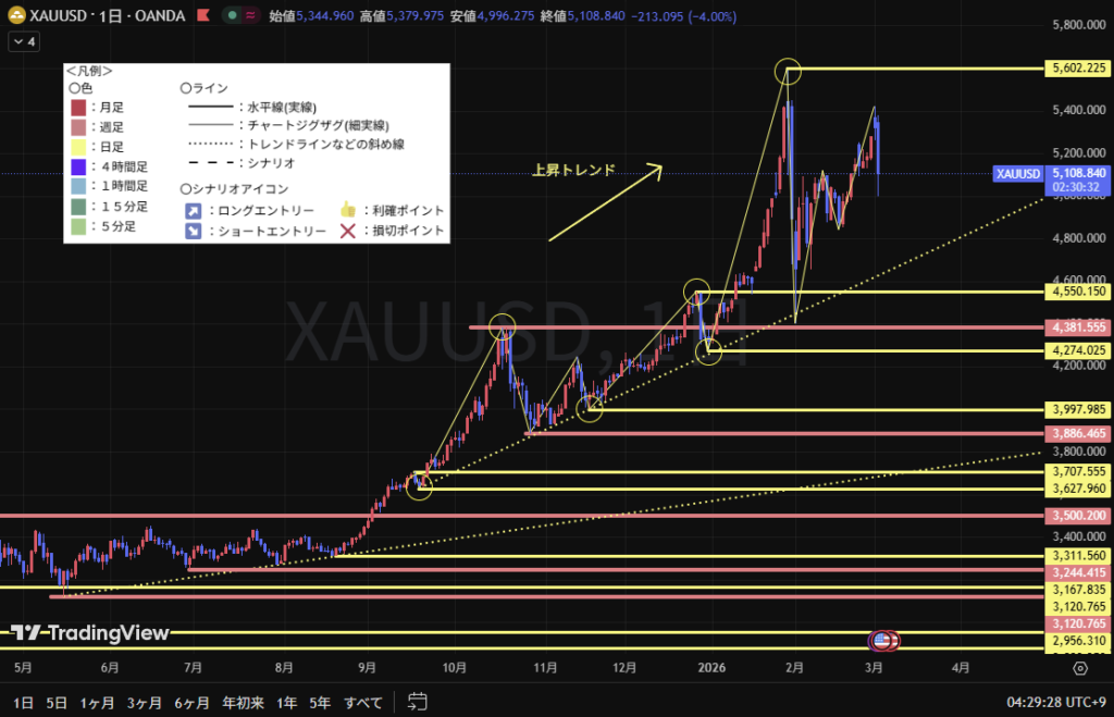 シナリオとしては、直近のメインシナリオはショートエントリーだが、GOLD全体としてはロングエントリーが主力。