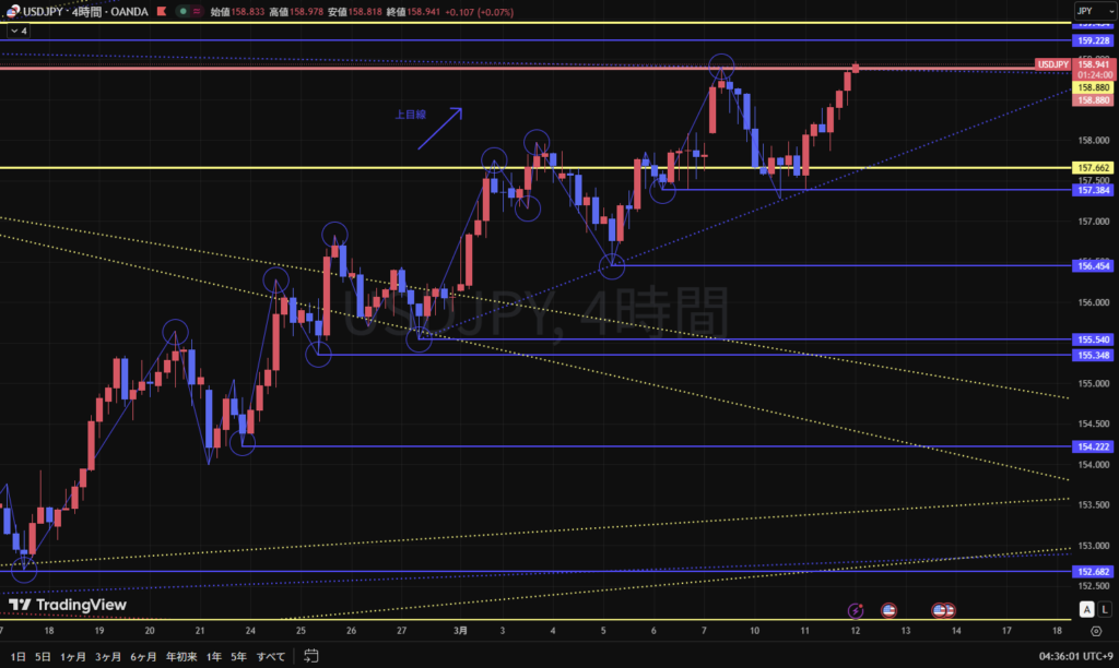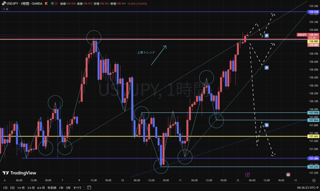 その場合、4時間足トレンドラインのサポレジ転換でエントリーするかは、再度環境認識をして検討していく。