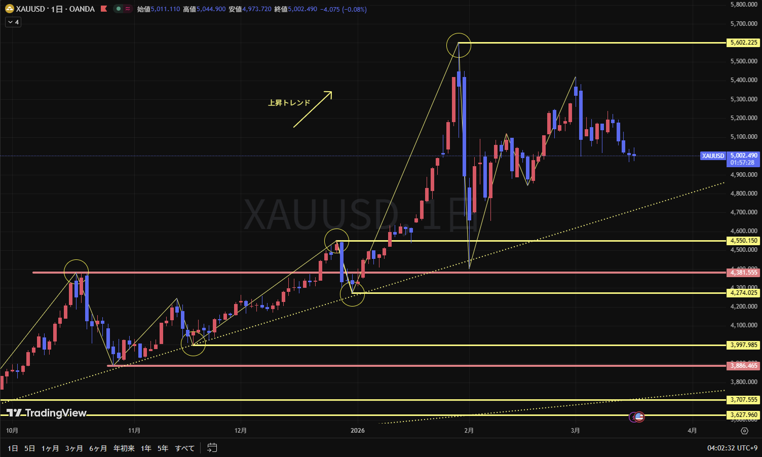 3/10(火)以降、戻しを作らずに上昇していたため、戻しを作っているか?