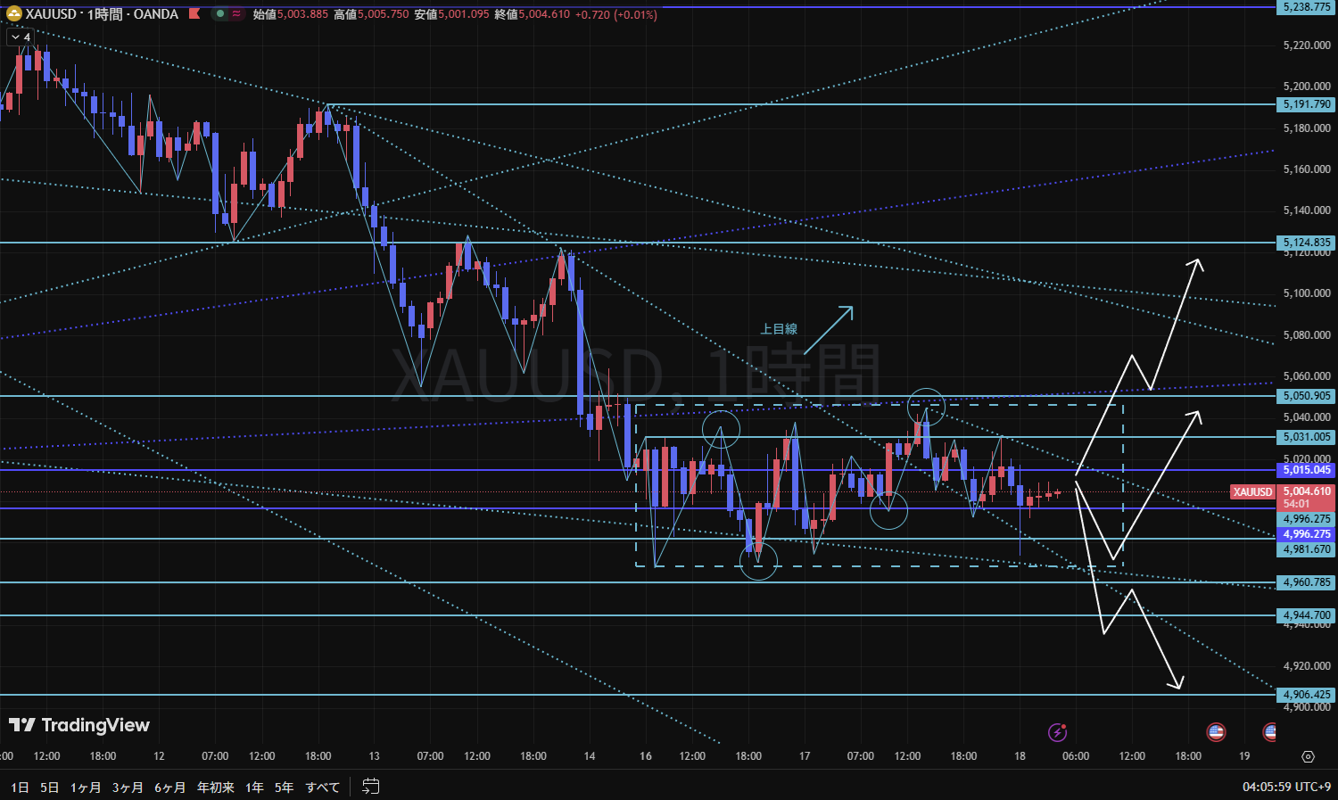1時間足は下目線であるため、ショートエントリーをメインシナリオとする。