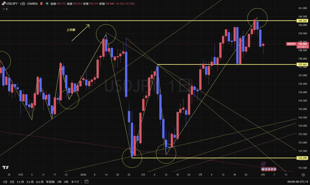 その場合、再度160円付近になり、介入警戒感などからボラティリティの鈍化や方向感のない動きになる可能性がある点は注意が必要!