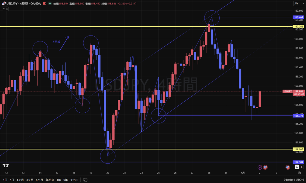 日足:上昇トレンド 4時間足:上目線 1時間足:上目線
