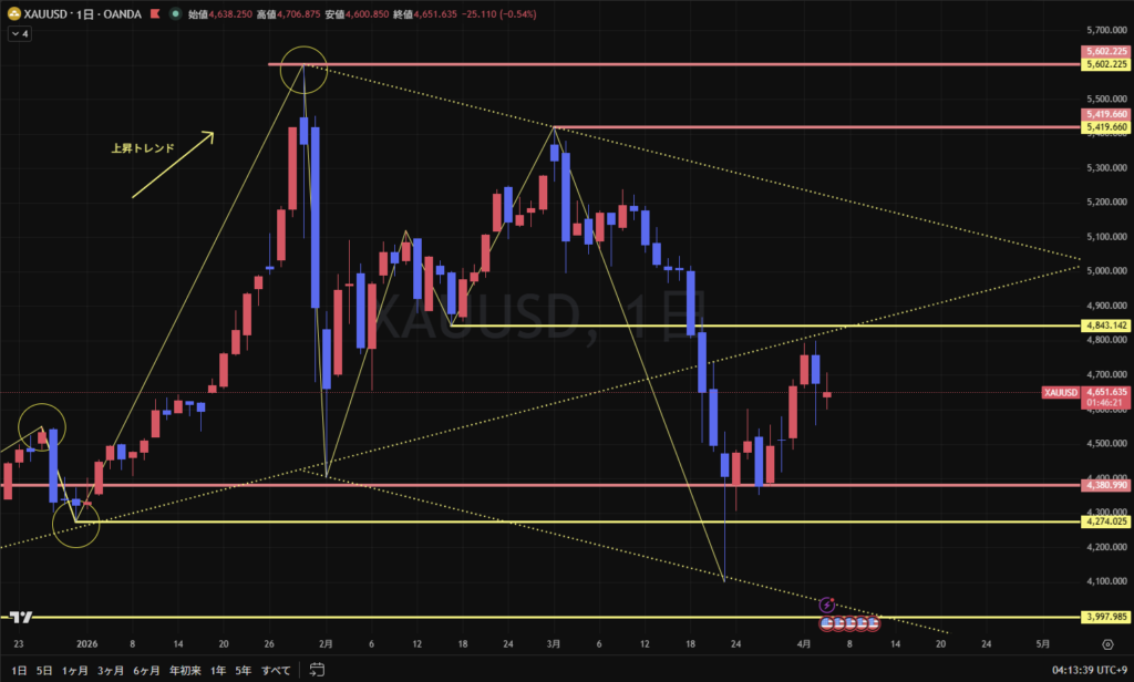 世界情勢も変化がありそうなニュースも見受けられるため、ニュースや発言により、それまでの流れとは逆の急激な動きが発生する可能性は常にある。