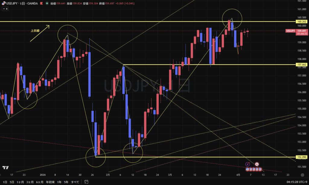 介入警戒感などから方向感のない動きへの注意も必要だが、世界情勢、戦争問題などは今だ不安定であり、ニュースや発言等によるテクニカルとは異なる大きな動きが出る可能性がある点は引き続き要注意!!