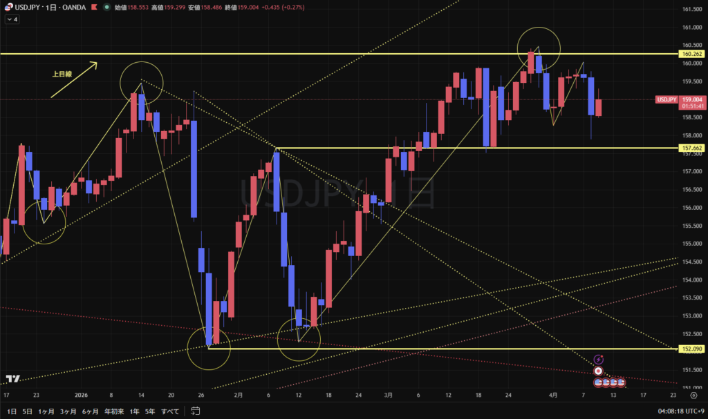 介入警戒感などから方向感のない動きへの注意も必要だが、世界情勢、戦争問題などは今だ不安定であり、ニュースや発言等によるテクニカルとは異なる大きな動きが出る可能性がある点は引き続き要注意!!