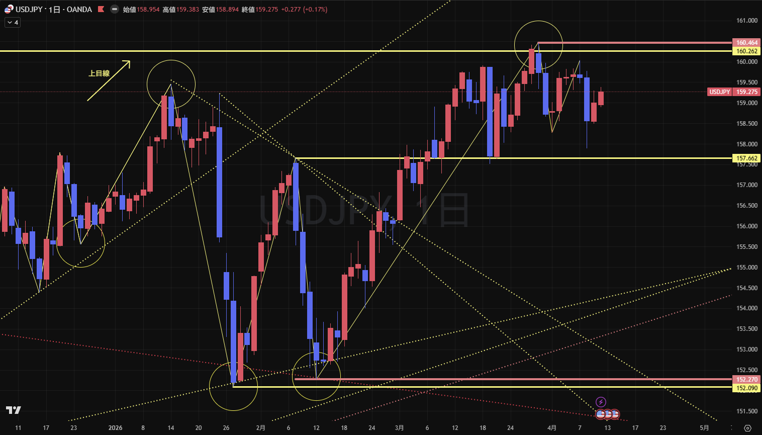 介入警戒感などから方向感のない動きへの注意も必要だが、世界情勢、戦争問題などは今だ不安定であり、ニュースや発言等によるテクニカルとは異なる大きな動きが出る可能性がある点は引き続き要注意!!