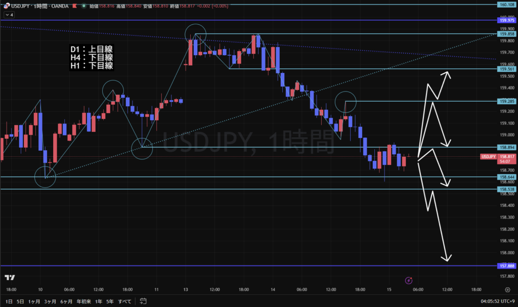 1時間足は下目線に転換
