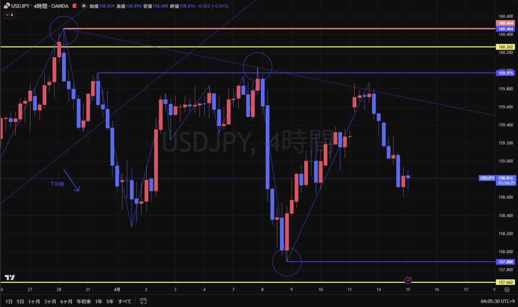 4時間足は、下目線継続。