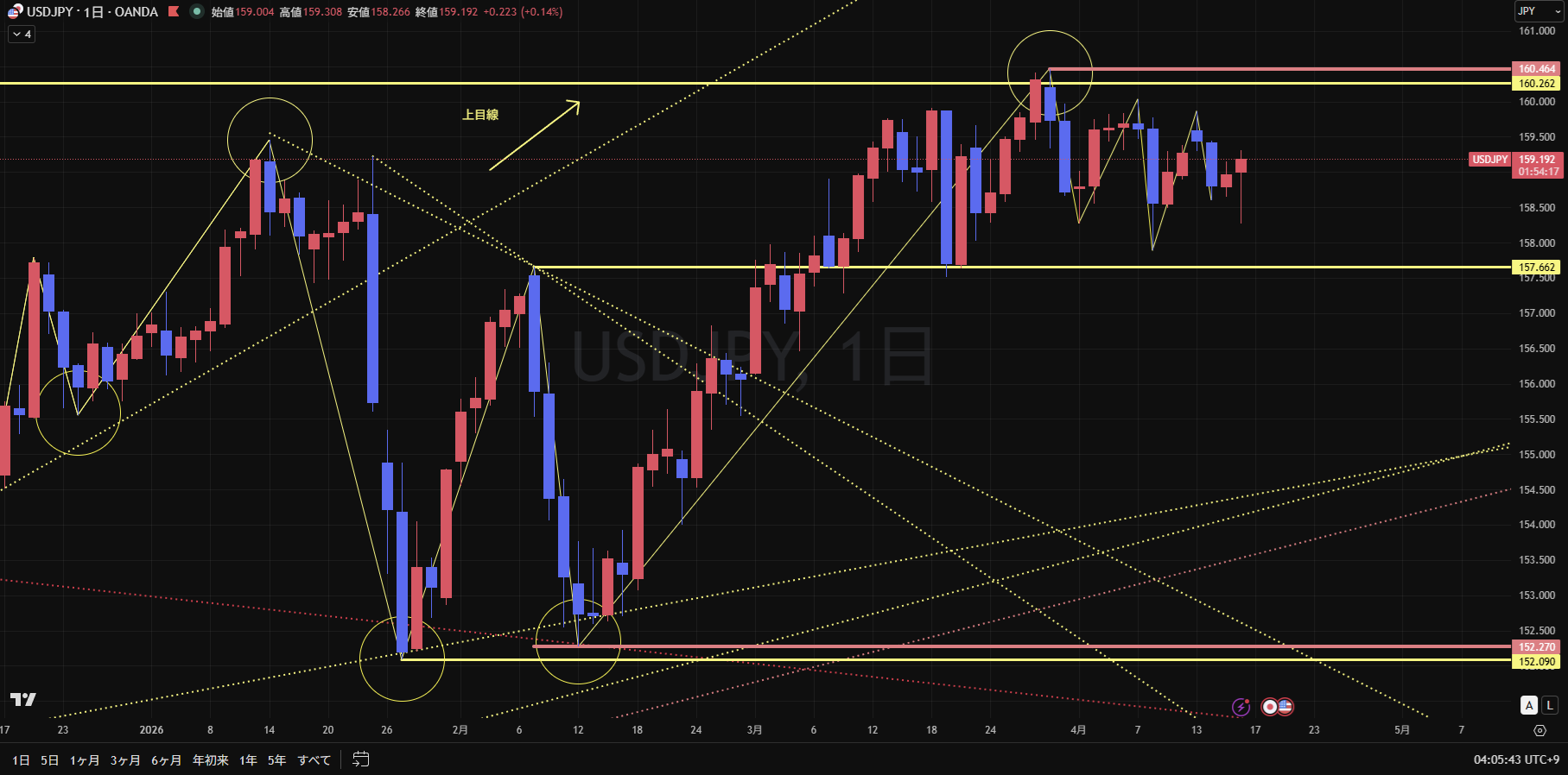 介入警戒感などから方向感のない動きへの注意も必要だが、世界情勢、戦争問題などは今だ不安定であり、ニュースや発言等によるテクニカルとは異なる大きな動きが出る可能性がある点は引き続き要注意!!
