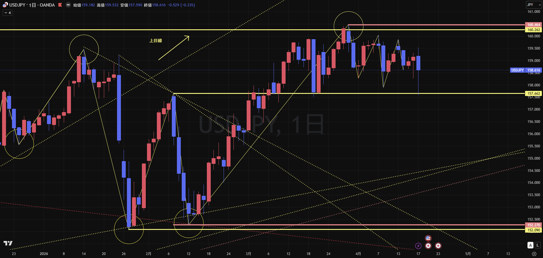 介入警戒感などから方向感のない動きへの注意も必要だが、世界情勢、戦争問題などは今だ不安定であり、ニュースや発言等によるテクニカルとは異なる大きな動きが出る可能性がある点は引き続き要注意!!