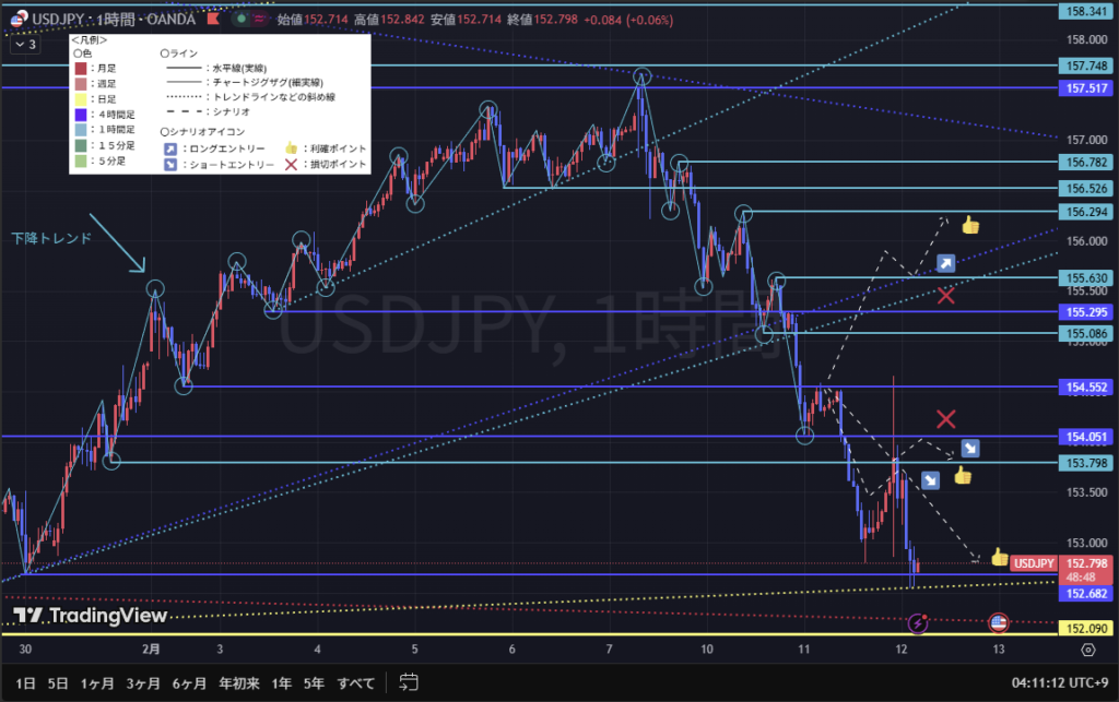 ドル円は、想定どおり下げていっていたので悔しい部分ではあるが、シナリオは合っていた!ということで今後の自信にしたいと考えている。