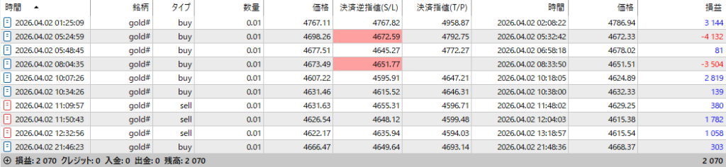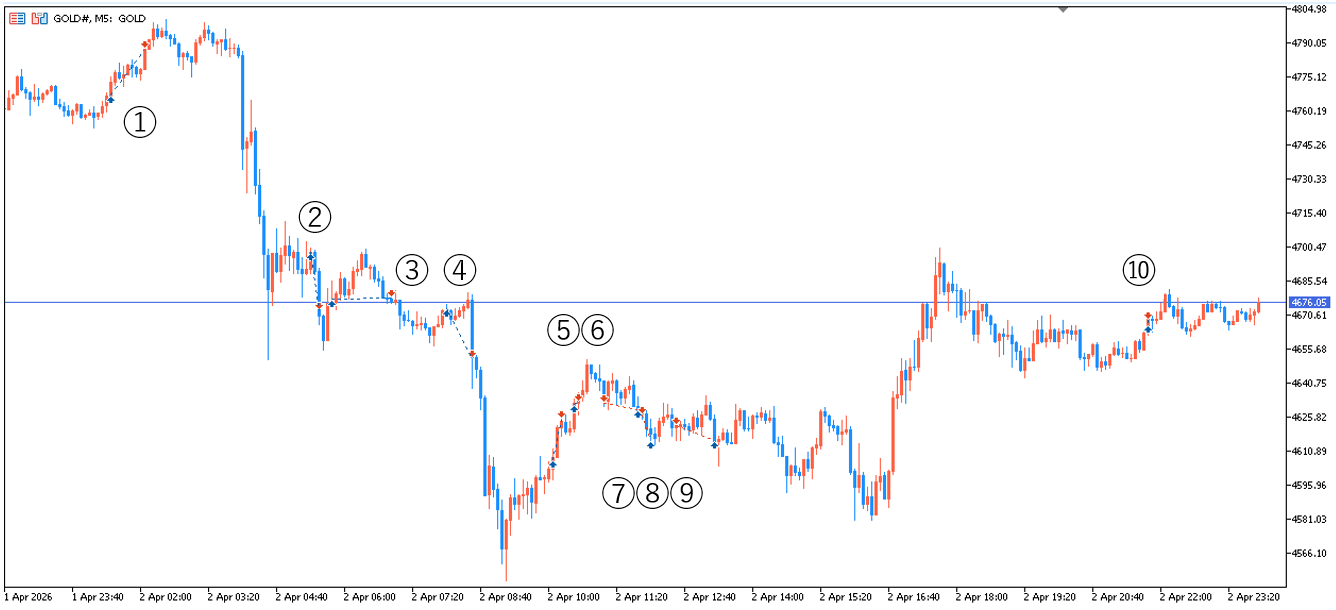 気付けば、GOLDは10回もエントリーしており、根拠の薄い中で感情でのトレードを行ってしまった。