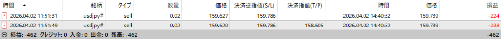 | トレード回数 | 2回 (0勝 2敗) |