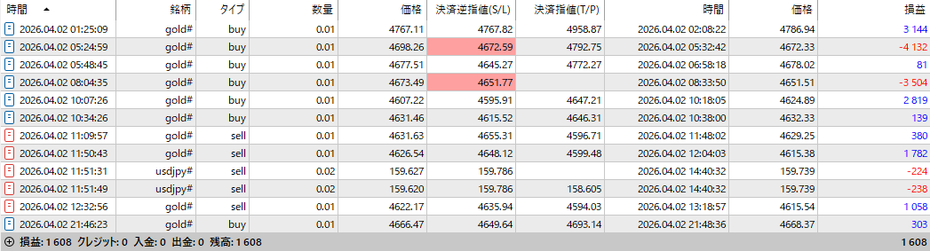 | 合計収支 | +1,608 円 |
