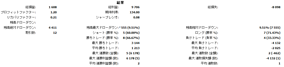 | トレード回数 | 12回 (8勝 4敗) |