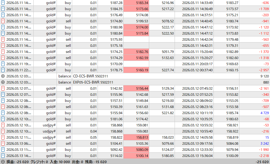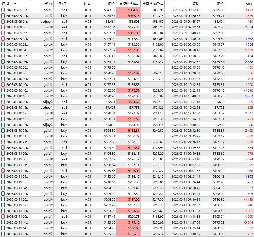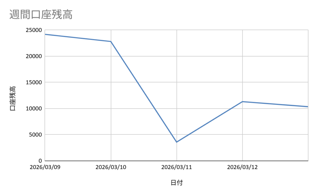 今週は、3/11(水)に口座残高をほぼ吹き飛ばす損失を出した。